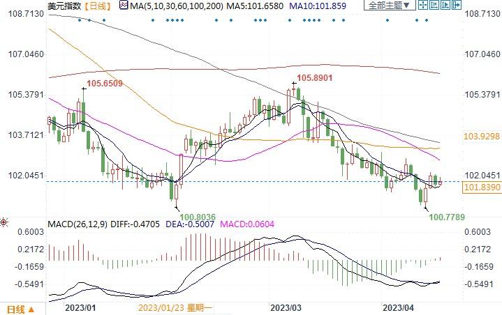 美元指数日线图北京时间4月19日15:14,美元指数报101.81