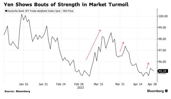巴克莱分析师Shinichiro Kadota和Lhamsuren Sharavdemberel表示,尽管近年来美元成为宏观冲击的主要避难所,但日元重新成为避险货币的迹象最近已经浮出水面,在金融市场动荡引发的避险情绪高峰时期,日元表现出强势。