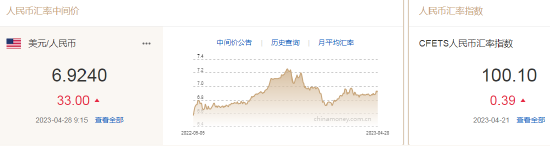 4月28日,人民币中间价报6.9240,下调33点,上一交易日中间价报6.9207,在岸人民币上一交易日收报6.9231。