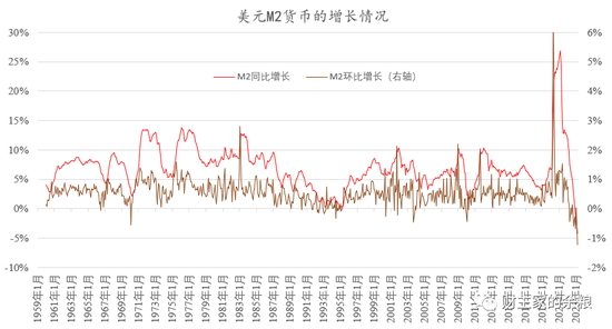 1959年美国正式出现M2统计数据,之后一直到2022年12月份之前,美元M2数据从未出现过同比负增长,更别说超过3个月的同比负增长,就是这个原因。