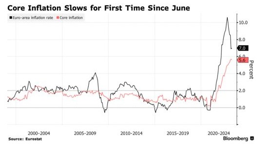 由于天然气成本的逆转,物价涨幅的主要指标已从两位数的峰值回落,欧洲央行目前将注意力集中在潜在通胀上,将其作为决策的关键因素。