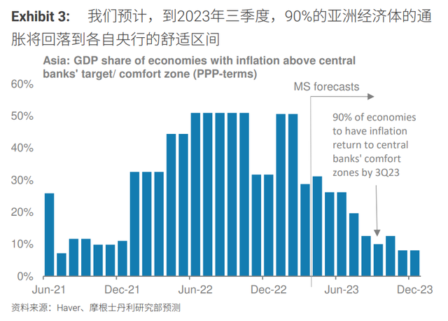 摩根士丹利认为,亚洲地区大部分经济体的通胀有望在今年三季度回落到央行的舒适区间,降息有望在今年第四季度发生,比美联储提前一个季度。