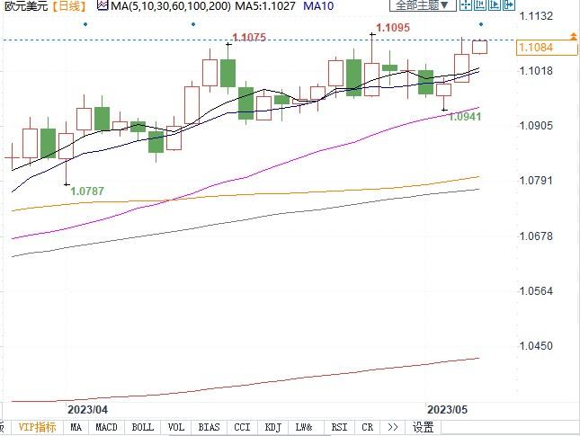欧元兑美元日线图北京时间5月4日13:50,欧元兑美元报1.1083/84