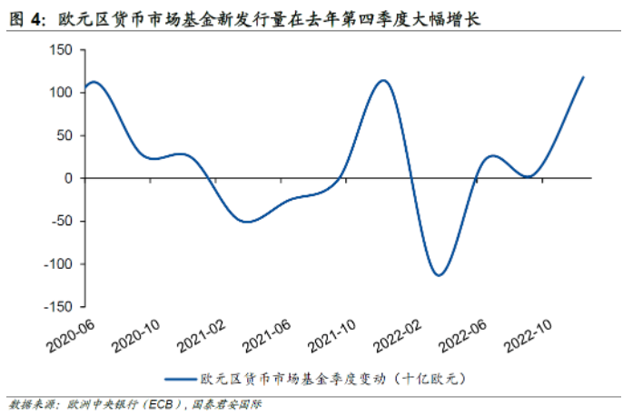 正常来讲,随着央行加息,收益率相对较低的存款会随之流出至高收益的产品,这是一种比较常规的逻辑。在欧元区,即使存款从银行流出,也大概率不会流出到银行体系之外,而是以另外一种形式留在银行体系中。