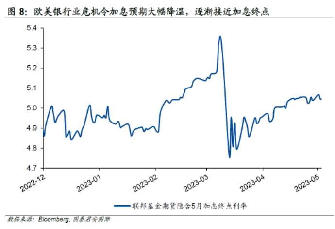 市场信心恢复的主要动力是加息终点的渐趋确定,即货币政策的不确定性在下降,而深究其背后原因,实际上是由货币政策和银行存款利率两方面的变化所决定的。一方面,从货币政策角度来看,在欧美银行业危机爆发之前,关于加息终点的争论一直在持续,市场也伴随着加息预期的变化而频繁的波动。而危机的爆发,令决策者们意识到,在制定货币政策时,不能仅考虑控制通胀这个单一事件,而是需要将金融稳定视为另一个关键因素,货币政策的确定性随之上升,本轮加息的框架开始逐步稳定。