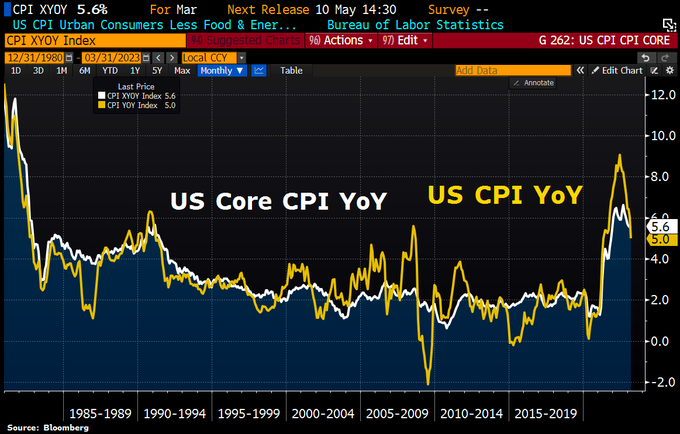 上月,虽然美国整体CPI同比增速回落至了5%,但核心CPI增速却升至了5.6%,这是自2021年1月以来核心通胀率首次高于总体通胀率,服务通胀的粘性以及就业市场的韧性持续成为了物价维持高位的元凶。而这一切,在4月或许仍不会有太为明显的改观。