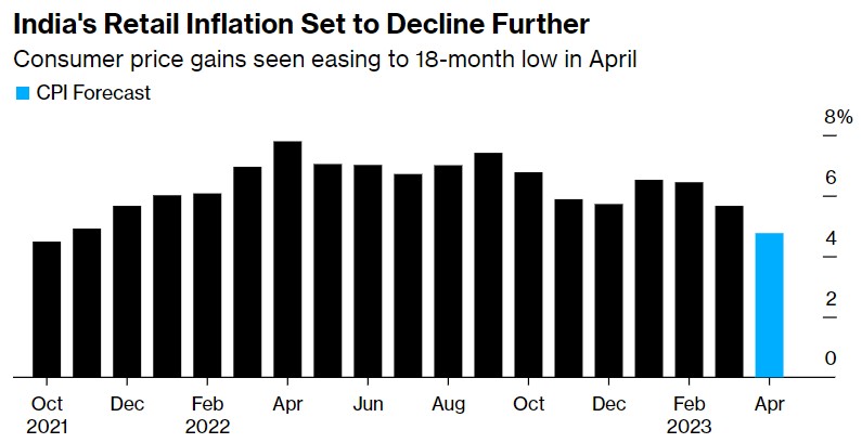 印度消费者价格指数(CPI)显示出进一步放缓的迹象,这为印度央行维持利率不变提供了空间。此前,印度政府的激进紧缩行动抑制了需求,并扰乱了更广泛的经济前景。将于周五晚些时候公布的数据预计显示,印度4月份CPI同比增长4.8%,自2021年10月以来的最低水平,这将是物价连续第三个月降温,使该指标更接近印度央行2%-6%目标的中点。