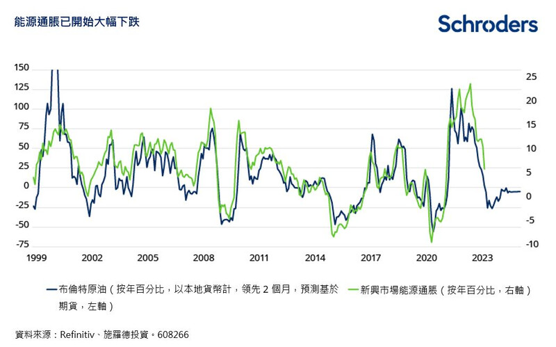 能源价格下跌是至今对总体通胀下跌发挥重要作用的因素。俄乌冲突导致的油价飙升影响逐渐消退,David Rees表示,就短期而言,能源通胀应会进一步下跌。倘若油价维持在目前水平,相信能源通胀有望在可见未来维持在低位水平。