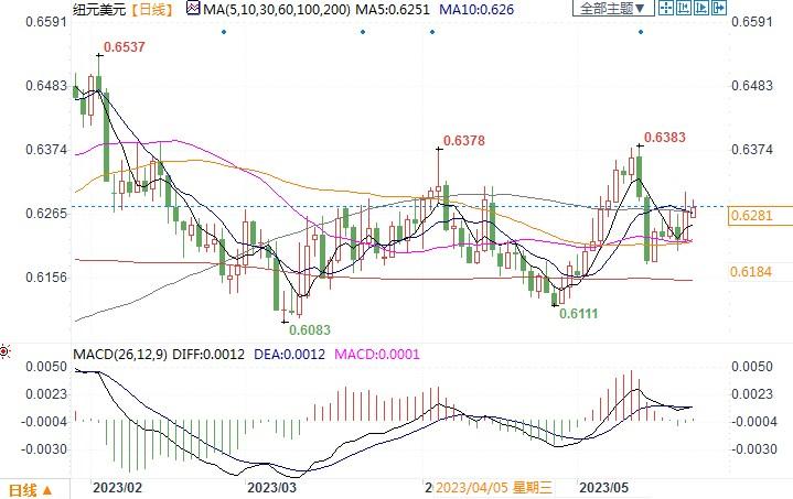 纽元兑美元日线图北京时间5月22日14:06,纽元兑美元报0.6278/80