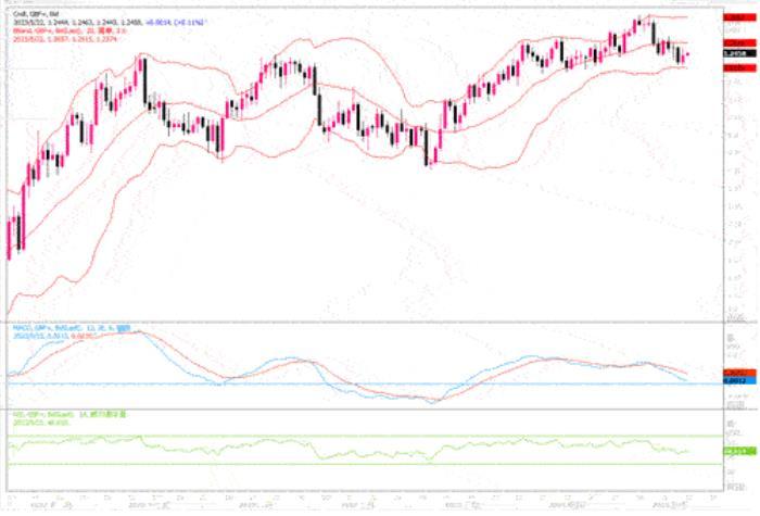 上周五(5月19日)英镑兑美元微升0.28%,收盘于1.2445。上周五当天,美元指数的全面下跌,间接稳住了英镑近期的跌势。英国好于预期的经济表现,美国通胀降温以及六月加息进程有望停止的预期导致的美元下滑,从而扶助了英镑。接下来,若本周反映英国通胀的数据还是表现强顽,则会增加英国央行六月加息的概率,料想也会刺激英镑的回升。短线4小时图上,镑美各项技术指标出现拐头向上的趋向,但力道不足。上方初步阻力在1.2490,继而是1.2540。下方留意的支撑区域在1.2350-1.2380。