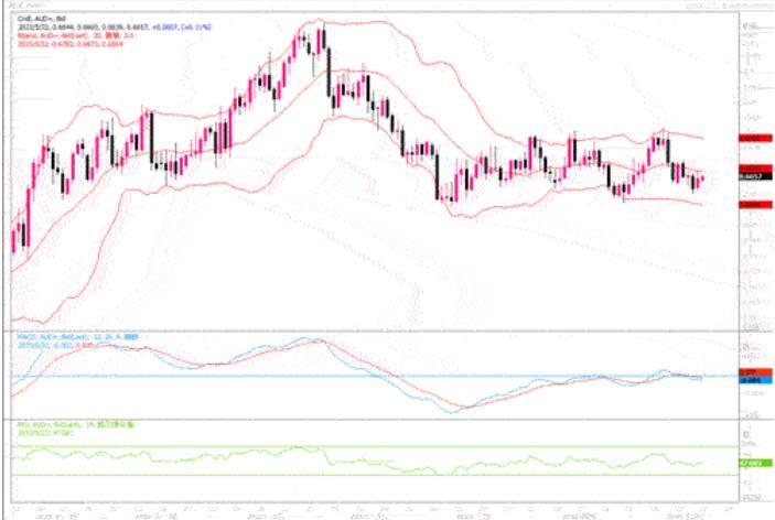 上周五(5月19日)澳元兑美元上涨0.41%,收盘于0.6649。得益于周五美元的下跌,澳元获得微辐的反弹。上周来自澳洲的数据显示,澳洲4月就业人口意外下降,这表明红火的劳动力市场可能正在降温,增强了暂停加息的理由。这是导致澳元一直处于徘徊走势状况的主要影响因素之一。随后,澳元/美元要想走出当前的横盘格局,恐怕还要冀望美联储6月也按下加息停止键,才能间接获得抬捧。澳元/美元短线继续在0.66附近获得支撑,短线技术指标似乎偏向于反弹之姿。上方初步阻力在0.6675,继而是0.6700。下方的支撑继续留意0.6630-0.6590区域。