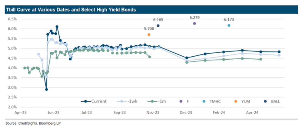 信贷研究机构CreditSights的报告显示,几类最不受欢迎的国库券的收益率甚至与多类短期垃圾债的收益率极为接近。例如包装公司Ball Corp或住宅建筑商Taylor Morrison Communities Inc.出售的债券。这些公司的评级为BB+,完全属于垃圾级或“投机”级债券。