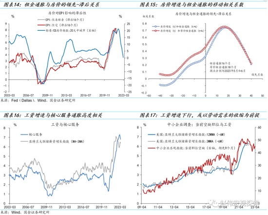 [2] 从相关系数上来说,核心服务(不扣除租金)通胀与工资的相关系数更高(0.83,扣除租金的服务通胀与工资的相关系数为0.66)。