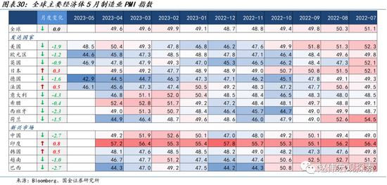 欧美服务业分化,制造业PMI均回落。欧元区、英国、法国5月服务业PMI分别下行至56、55及53,德国服务业PMI升至58,前值56,美国服务业PMI回升至55,前值54;欧美制造业则明显弱于服务业,欧元区5月制造业PMI录得45,前值46;英国降至47,前值48;德国降至43,前值45;法国升至46。欧洲制造业PMI的持续下滑表明制造业活动仍面临挑战,制造业和服务业之间持续分化。