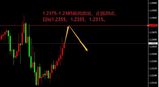 1.2375-1.2385区间卖出,止损20点,目标1.2355、1.2335、1.2315。