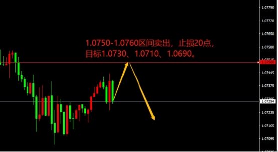 1.0750-1.0760区间卖出,止损20点,目标1.0730、1.0710、1.0690。