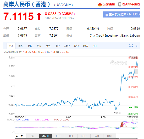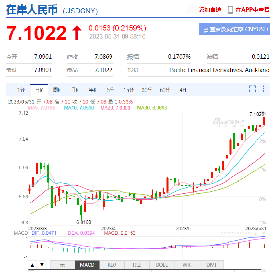 5月31日,在岸人民币跌破7.10关口,为2022年11月30日以来首次,日内贬值逾150点。