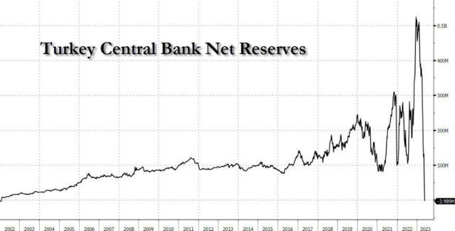 由于频繁的市场干预和其他冷却外汇需求的努力,土耳其央行的外汇储备近年来已经急速下滑。截至5月19日的一周里,土耳其央行的净储备已经减少了24.8亿美元,自2022年以来已经下降了277亿美元。