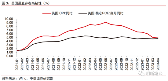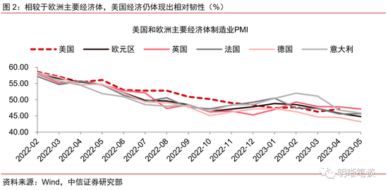 美国经济相对韧性、通胀粘性略超预期以及美联储官员偏鹰派发言导致市场降息预期回调、债务问题扰动市场风险偏好等因素共同驱动美元指数反弹。基本面方面,尽管2022年11月以来,美国ISM制造业PMI便在荣枯线以下运行,但今年4月美国制造业PMI较3月读数出现边际回升。相比之下,欧洲制造业整体表现或更为疲软,欧元区制造业PMI在今年以来持续走弱,英法德意为代表的主要欧洲经济体制造业PMI也未现明显改善迹象。通胀方面,美国4月整体通胀虽放缓,但核心PCE物价指数同比上升4.7%、环比上升0.4%,均超出市场预期,体现出美国通胀的高粘性。叠加近期美联储官员偏鹰派的发言,市场对于美联储的降息预期有所回调。此外,美国债务问题扰动同样从市场风险偏好维度对美元指数形成一定支撑,尽管近期美国债务上限困局出现一线曙光,拜登与麦卡锡已就债务上限问题达成原则性协议,但靴子落地前,预计市场情绪或仍有所波动。