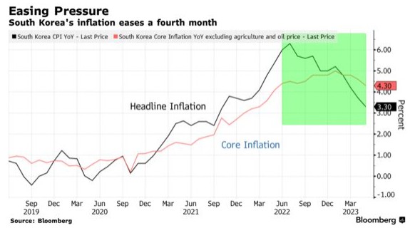韩国 5 月份的通胀连续第四个月放缓,这再次表明物价压力正在回落,并为央行提供了维持暂停加息的空间。