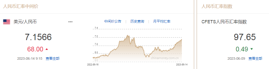 6月14日,人民币中间价报7.1566,下调68点,上一交易日中间价报7.1498,在岸人民币上一交易日收报7.1536。