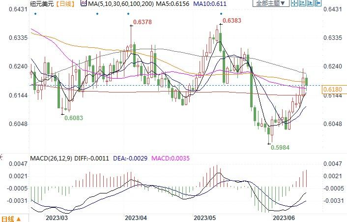 纽元兑美元日线图北京时间6月15日13:30,纽元兑美元报0.6186/88