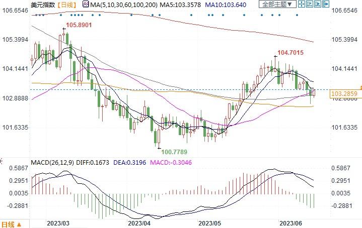 美元指数日线图北京时间6月15日10:38,美元指数报103.28