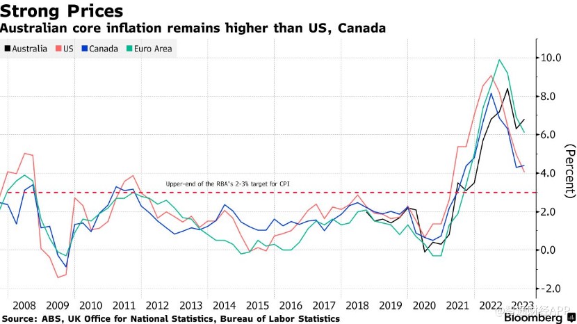 澳大利亚核心通胀率仍高于美国和加拿大