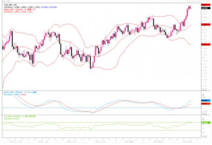 周一(6月19日)英镑兑美元下跌0.2%报1.2796,仍接近14个月高位。投资者消化了上周多个央行的一系列货币政策决定,并等待英国央行周四公布利率决策。在此之前,一些获利回吐调整性的交易稍稍压低了英镑的汇价。最近几周,英镑兑欧元和美元均反弹,经济数据显示,英国的通胀远比美国或欧洲要顽固得多。这些数据促使交易员预计英国央行将进一步加息,推动英国公债收益率上涨,也提振英镑。英国两年期公债收益率周一升至5.012%,自2008年以来首次突破5%。高盛表示,根据其英镑贸易加权指标,英镑处于2016年中英国退欧公投刚结束以来的最高点。“有可能还有更多上行空间,“高盛英国通胀交易主管在给客户的一份报告中称。美银和巴克莱银行都认为英镑兑美元将继续上涨,至少在短期内如此。最新的英国通胀数据将于周三公布。经济学家预计,整体消费者物价指数(CPI)同比增幅将从4月的8.7%略微降至8.5%。不过,他们预计核心CPI涨幅将稳定在6.8%。英国央行还将于周四公布利率决策,投资者和经济学家预测,决策者将宣布加息25个基点,至4.75%。总之,近期宏观面应该是能给到英镑继续冲高的理由。英镑/美元短线防微幅调整,整体仍偏上行。