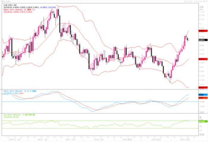 周一(6月19日)澳元兑美元周一从数周高点回落,上周曾大涨近2%并触及四个月高点0.6900美元,这也是一个关键阻力水平。澳元在不到三周的时间内已涨0.04美元,涨势反映了全球风险情绪普遍改善,以及投资者对澳洲加息预期的急剧转变和就业数据的乐观表现。利率期货现在暗示,目前4.1%的现金利率将在4.6%左右达到顶峰,这与一个月前一些人认为将在3.85%触顶有了明显变化。澳洲央行周二将公布6月政策会议记录,将提供更多关于前景的线索,届时澳洲央行副总裁布洛克的讲话也将提供更多线索。如果会议纪要继续传达出未来继续加息的强烈信号,预料对于澳元的刺激作用将会继续升高。短线澳元/美元继续面临一定的小幅下落调整走势风险,但整体上还是保持着较强烈的上冲倾向。