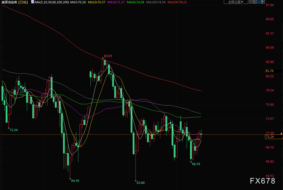 商品收盘情况:美国期金下跌0.4%,报1964.00美元。布伦特原油下跌0.68%,结算价报每桶76.09美元。美国原油期货下跌0.9%,报每桶71.17美元。