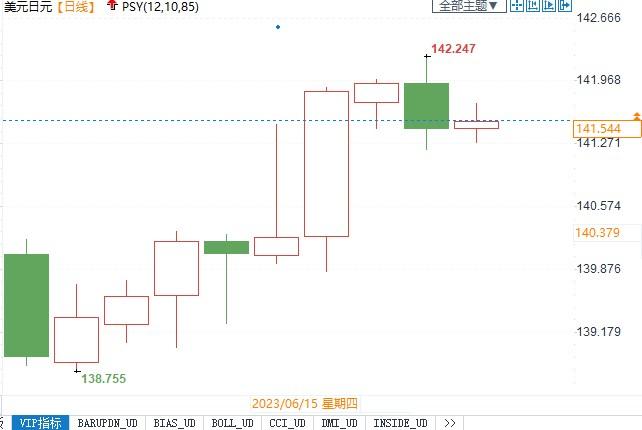 美元兑日元日线图北京时间6月21日10:38,美元兑日元报141.61/62