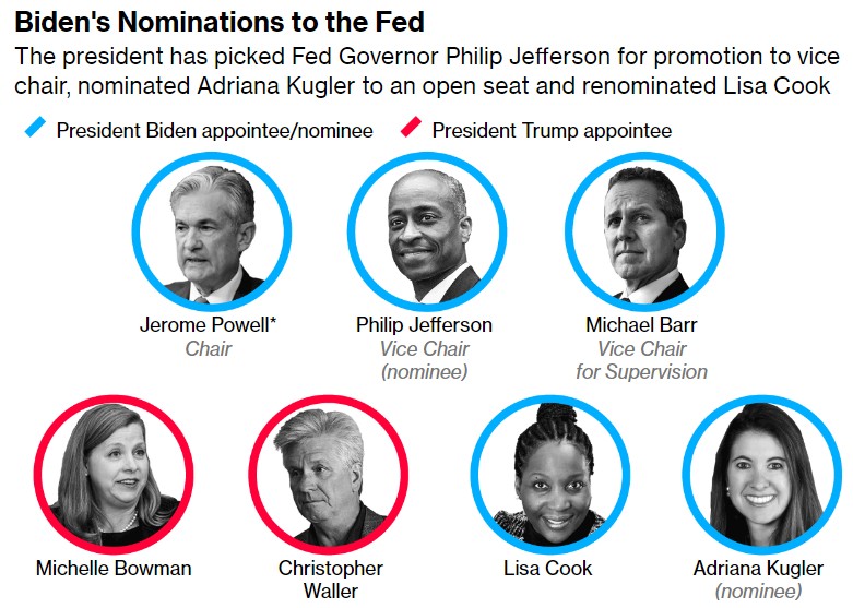 其次,库格勒被拜登提名填补布雷纳德今年早些时候离职后留下的空缺,她回应了杰斐逊的言论,并表示将通货膨胀率恢复到那个水平很重要。库格勒在参议院金融服务委员会发布的公开声明中表示:“如果提名得到确认,我将坚定地致力于制定货币政策,以降低通胀,促进就业最大化,并增强金融部门的弹性,以支持创造就业和经济增长。”库格勒是哥伦比亚裔美国人,如果得到确认,他将成为美联储首位拉美裔理事。