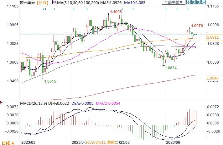 欧元兑美元日线图北京时间6月21日15:22,欧元兑美元报1.0912/13