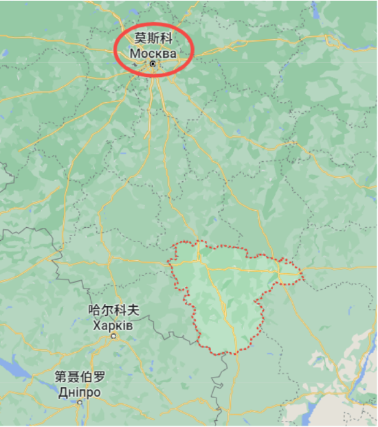 沃罗尼日州(虚红线内)与莫斯科相对位置