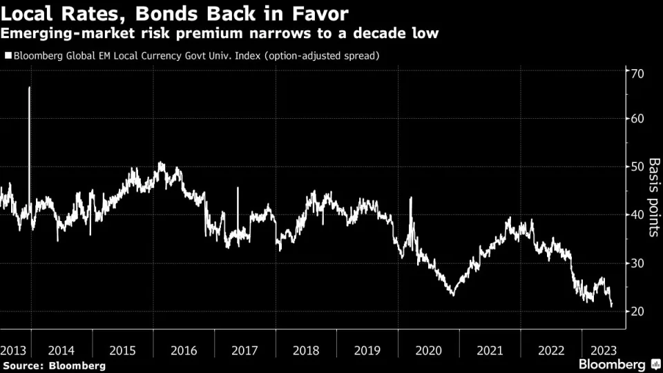 发展中国家本币债券的表现已经好于美国国债,其平均风险溢价已降至10年来的最低水平。这促使高盛建议客户通过利率掉期锁定印尼、以色列和南非的当前收益率,花旗集团也建议客户在印度、韩国和巴西进行类似交易。汇丰则青睐长期债券,尤其是拉丁美洲的长期债券。