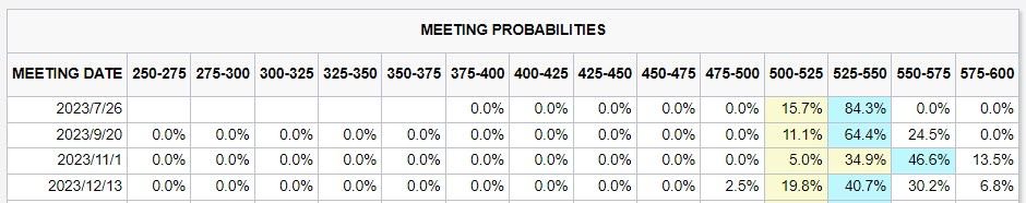 在上周较为强劲的经济数据公布后,市场目前普遍预计美联储在7月份将进一步加息,并且今年降息的预期已经基本消退。CME美联储观察工具,市场预计美联储7月加息25个基点的概率为84.3%。若本周一系列的就业数据显示出劳动力市场依然强劲,那么这将推高市场对美联储的加息预期。与此同时,若又是好坏参半的报告,那么市场预期变化预计不大。