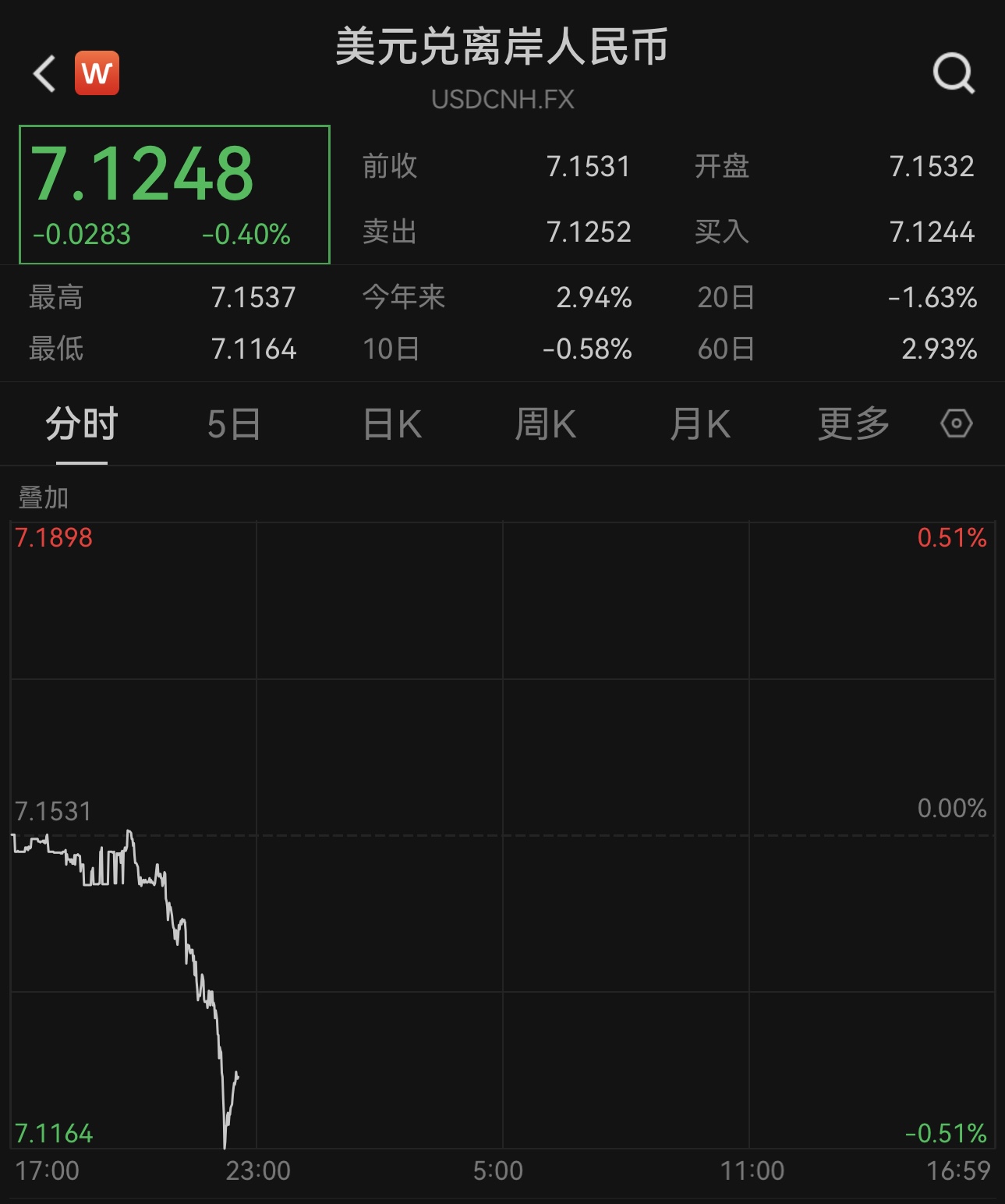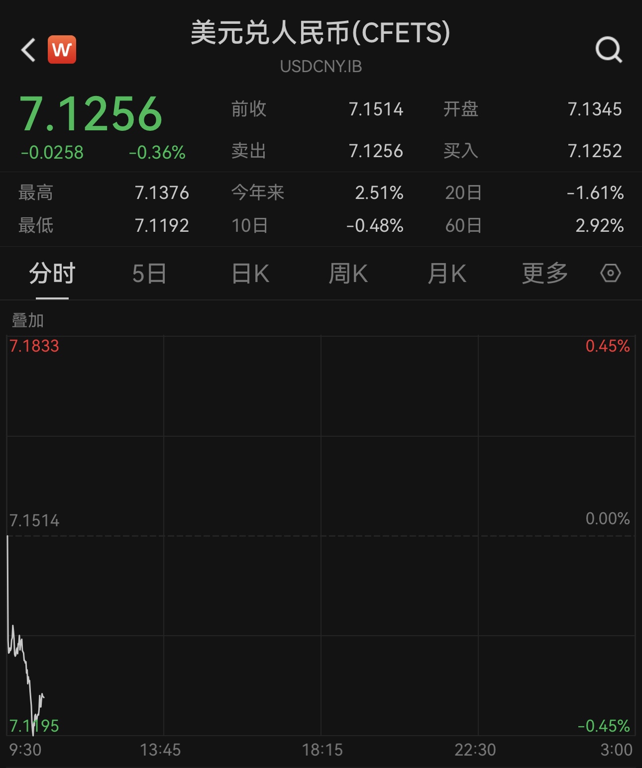【xm外汇】美联储加息后,人民币对美元汇率大涨超300点一度升破7.12