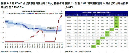 一、加息路径:9月加息概率下降但需验证通胀目标;更确定的是年内和明年初降息概率不大