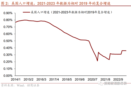疫后美国经济真的更强劲了吗?事实上,过去两年美国经济增速较疫前下了一个台阶,那么,为何美国经济看上去很好,且大幅加息尚未能引发衰退?两个变化和一个时滞可以解释这两个问题。首先,疫后美国人口增速及劳动力人口增速下降了,进而,在潜在增速放缓的同时通胀中枢反而上移。第二,疫后美国实物部门和服务部门脱钩,各部门错位的结果是总有一两个部门显得特别强劲。第三,本轮周期时间过短,此前宽松以及财富效应对部门资产的提振尚有余温,而过快的紧缩对经济与市场的冲击仍因时滞而显得尚不显著。