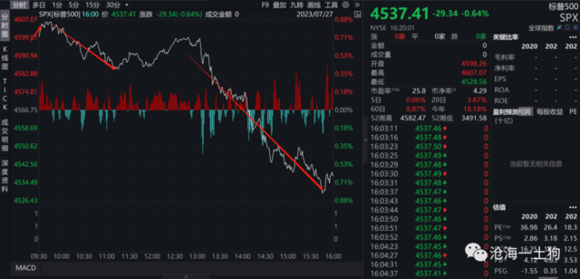 昨天的美股向我们展现了两股力量的拉扯,经济数据超预期,风险偏好上升,使得美股高开;但是,欧元贬值的力量不断地抽走美元,产生了很强的紧缩效应,又使得美股回落。最后,紧缩效应实在是太强了,标普500指数收跌0.64%。