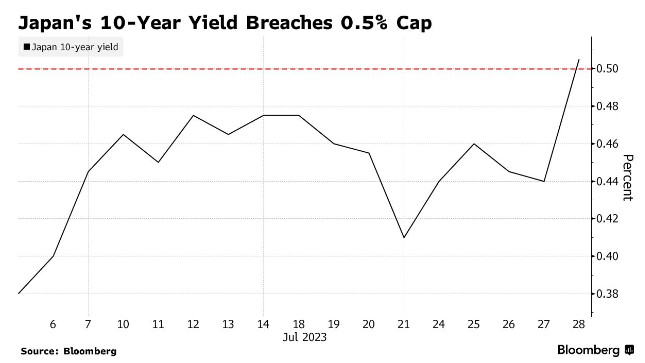 在外界猜测政策制定者正在讨论放松对利率的严格控制的背景下,日本基准国债收益率突破了央行的上限。
