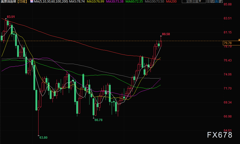 油价周四收高,布伦特原油自4月份以来首次突破每桶84美元,受OPEC+减产后供应紧张以及中国需求和全球经济增长前景再度出现利多因素的支撑。