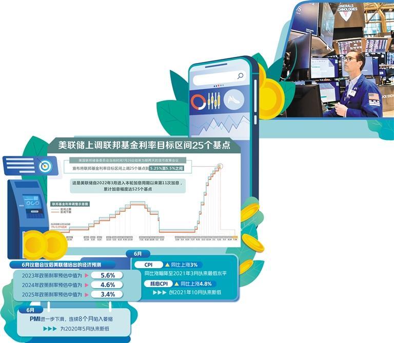 美国近期释放的有关数据支撑美联储重启加息。一方面,美国消费者信心有所回升。数据显示,7月份消费者信心指数为117,显著高于市场预期,创下2021年7月以来最高水平,反映出当前经济状况和预期均有所改善。另一方面,美国金融体系表现出较强的抗压能力。美联储公布的2023年度银行压力测试结果显示,美国大型银行能够抵御严重经济衰退带来的冲击,并在此情况下继续向家庭和企业提供贷款。