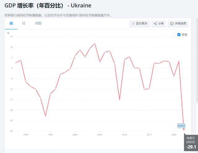 去年,严重冲突造成乌克兰经济大幅萎缩,同比下降近三成。