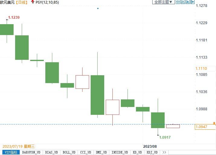 欧元兑美元日线图北京时间8月3日9:50,欧元兑美元报1.0947/48