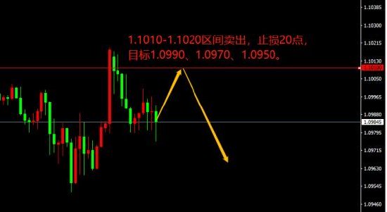 1.1010-1.1020区间卖出,止损20点,目标1.0990、1.0970、1.0950。