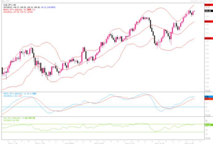 周一(8月21日),美元兑日元上涨0.55%,报收盘于146.21。经过前两个交易日的技术性获利调整后,市场似乎一来是对日本央行或会干预的防范,二来也是在寻找坚实的支撑位置。在美国和日本央行的货币政策未有大的改变场景下,套利交易模式下的多头美元交易节凑应会继续进行之中。4小时图上,美元/日元似乎在145.00水平附近获得阶段性的支撑,技术指标继续维持着上摆之态,显示美元/日元经过短暂技术性回调之后,趁低抄入盘仍旧支撑着美元的走高。而日线图上,中短均线均支撑着汇价走高,显示美元多头处于绝对优势之中。预料美元/日元将会不断被测试高点以及日本央行的容忍警戒水平。