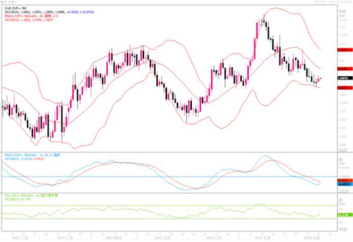 周一(8月21日),欧元兑美元报1.0896美元,当日略上涨0.21%。整体上来说,周一外汇市场较为平静。因为,投资者在美联储于怀俄明州杰克逊霍尔举行全球央行研讨会前谨慎等待时机。在上周公布的7月会议纪要里,美联储显露了鹰派态度,那么本次杰克森霍尔会议上,美联储主席鲍威尔是否继续发出强硬的讲话,将引为市场关注的焦点。目前市场上不少投资机构认为,美国经济数据仍很强劲,美元利率尚未到转身之时,甚至如果通胀率下降不明显,不排除美联储选择继续加息的可能性。当然了,欧央行行长拉加德的讲话也值得重点关注。若其明确表示,欧央行9月仍会继续加息来控制高踞不下的通胀,那么欧元或许会得到反弹的由头。4小时图上,欧元/美元陷入窄幅盘整走势中,波动区间主要集中在1.0850-1.0940之间。