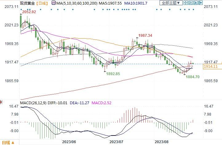 现货黄金日线图北京时间8月25日11:35,现货黄金报1914.11美元/盎司